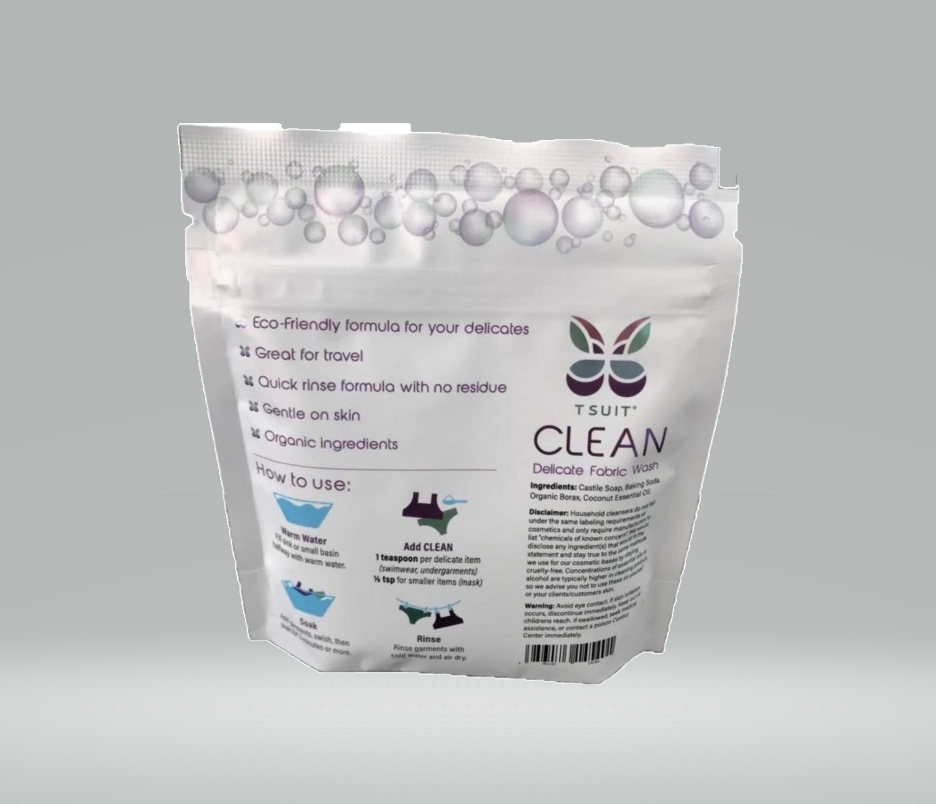 Clean can be safely used for hand washing cloth masks, swimwear, intimates, or any garment you want to treat with care.